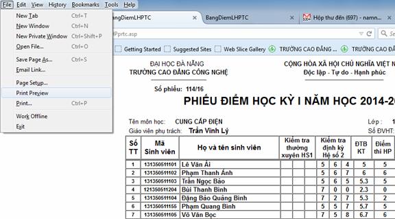 CÁC BƯỚC IN PHIẾU ĐIỂM
