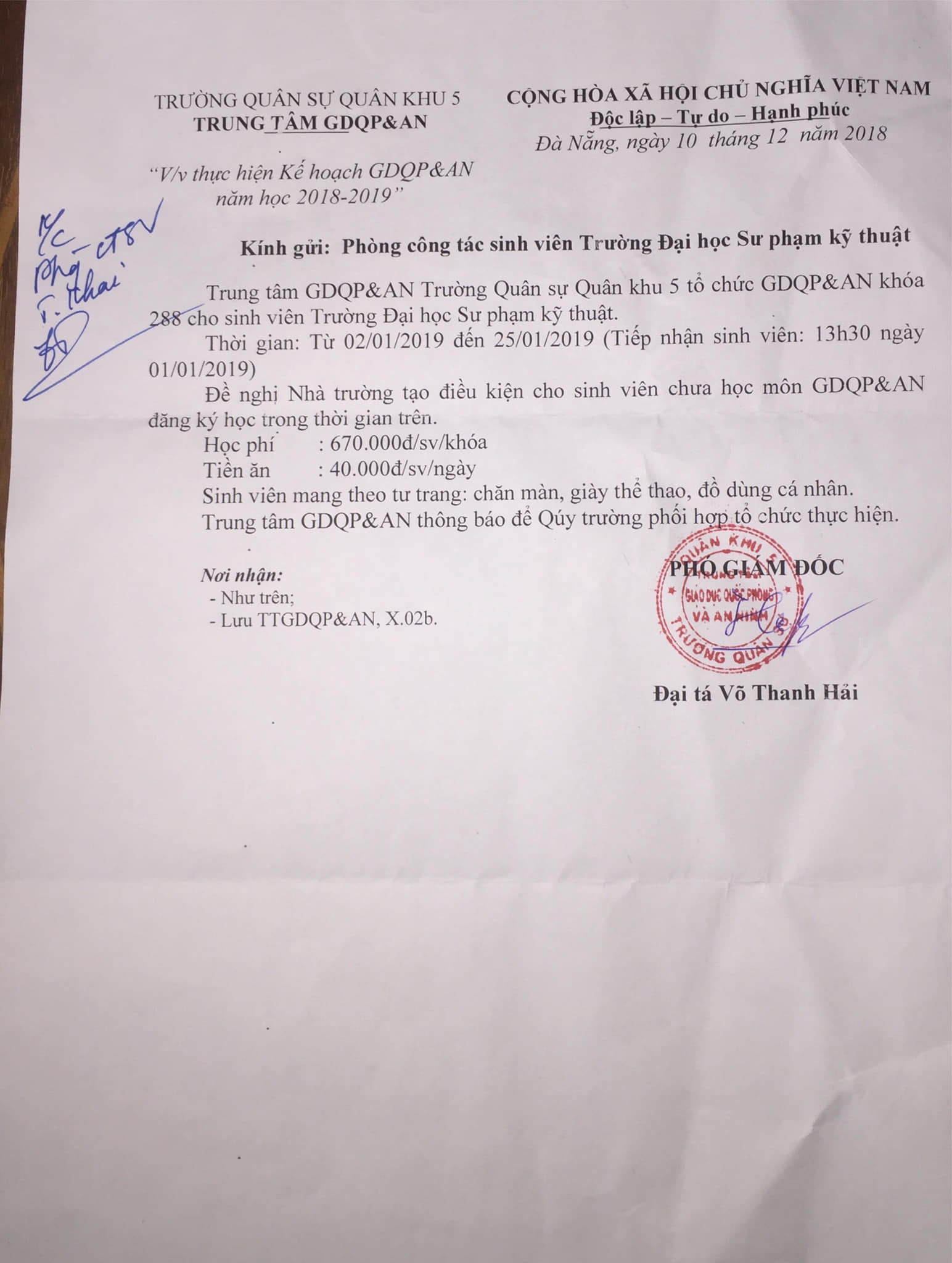 Thông báo nghỉ học lớp 125CLTKO1- Thầy Văn